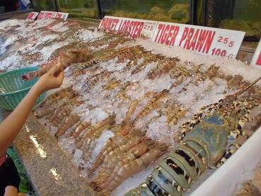 さぁ、夕食。ズラリと並んだタイガーエビ。どれにしようかな。