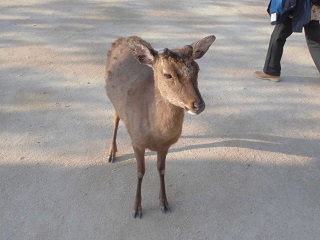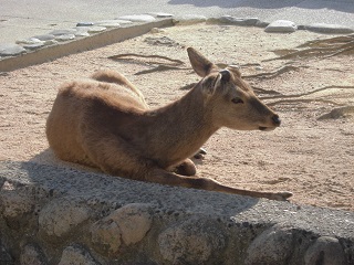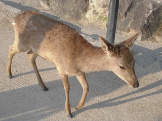 おっと、うわさの厳島のシカ。レストランも利用しているのか・・・。