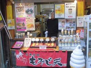 お、こちらは新ご当地グルメ!もみじ天。どんなんか?って言うと、
