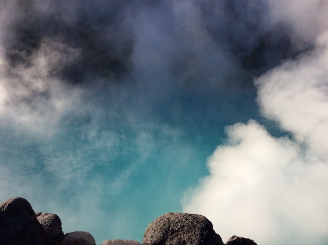 温泉が脇出る周辺にはご覧のように雲のような湯気がもくもくと絶え間なく立ち込め、