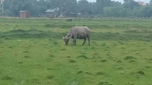 ベトナム(ハノイ郊外の村)では、水牛は現役バリバリでベトナムの農家さんを支えています。