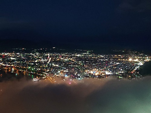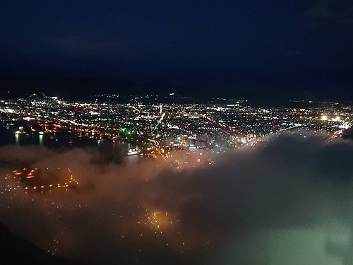 霧に包まれた、「100万ドルの夜景」も幻想的で素晴らしい
