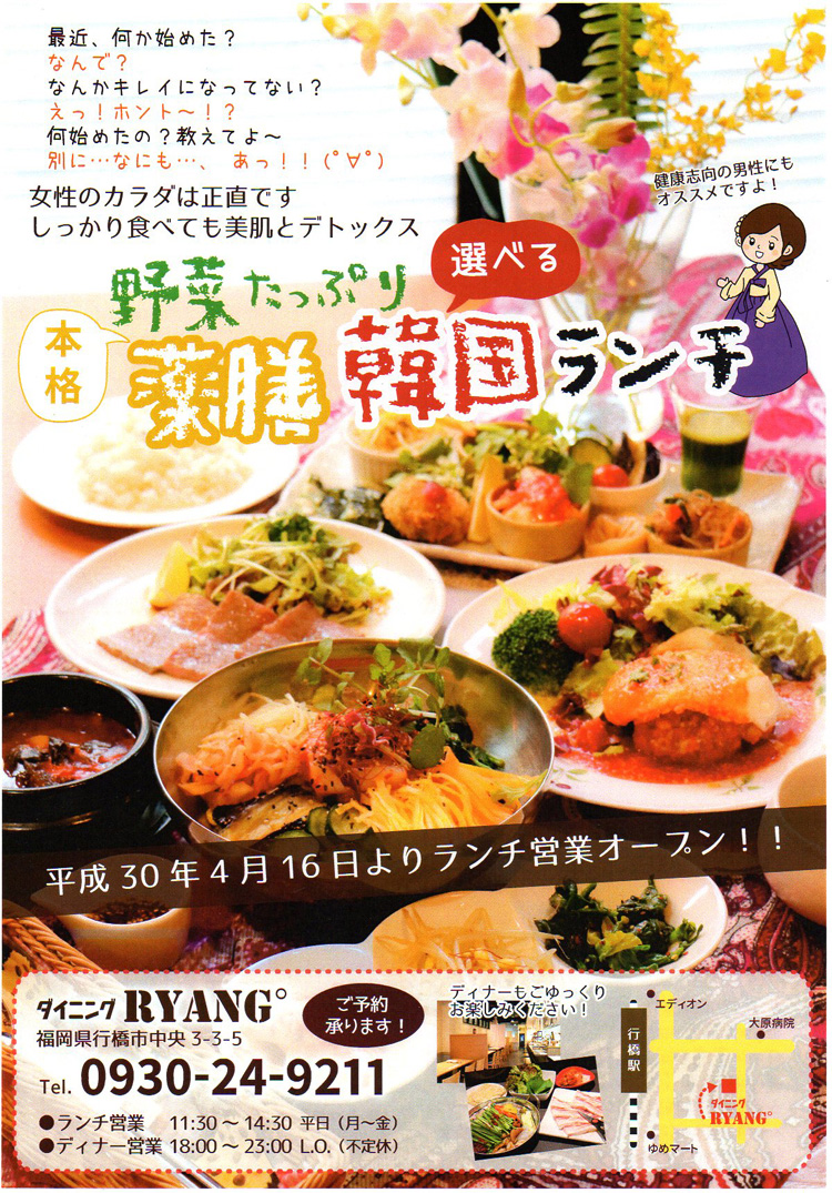 ¡ú¥°¥ë¥á¡úËܳÊÌôÁ·¥é¥ó¥Á¡ú4·î16Æü¤è¤ê¥é¥ó¥Á±Ä¶È¥ª¡¼¥×¥ó¡ª¡Á¥À¥¤¥Ë¥ó¥° RYANG¡Ê¥ê¥ã¥ó¡Ë