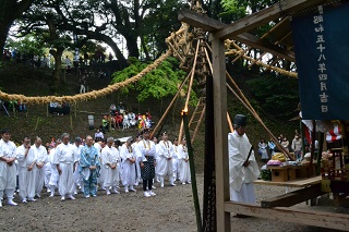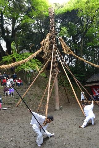 苅田町白川地区を抜け、平尾台中腹の素晴らしい棚田を見渡すことができる等覚寺で、1000年の伝統「等覚寺の松会」が4月20日に大樹に囲まれた荘厳自然の舞台で開催されました。