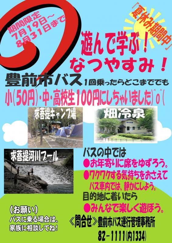 TOP TOPICS 豊前市バス 夏休み期間特別料金!(小・中・高校生対象) TOPICS 今話題になっていること 2014.8.8 豊前市バス 夏休み期間特別料金!(小・中・高校生対象) 豊前市 夏休み期間限定 7月19日〜8月31日まで 前の記事へ 一覧へ戻る 次の記事へ