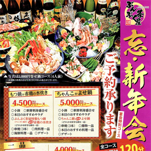 忘・新年会 [宴会特別コース] ご予約承ります!〜ぶんぶく茶屋